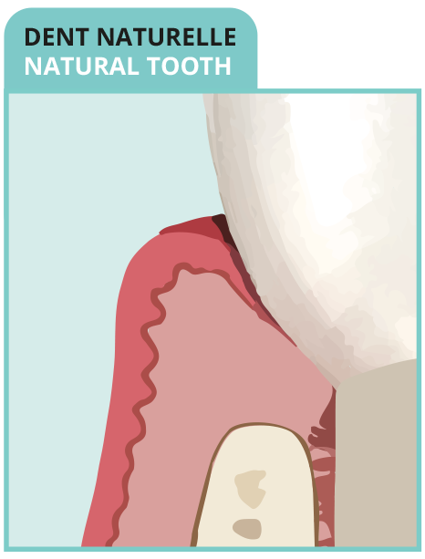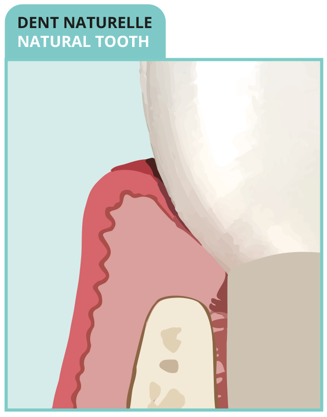 • Exposition d’une teinte ivoire de la racine en cas de récession gingivale