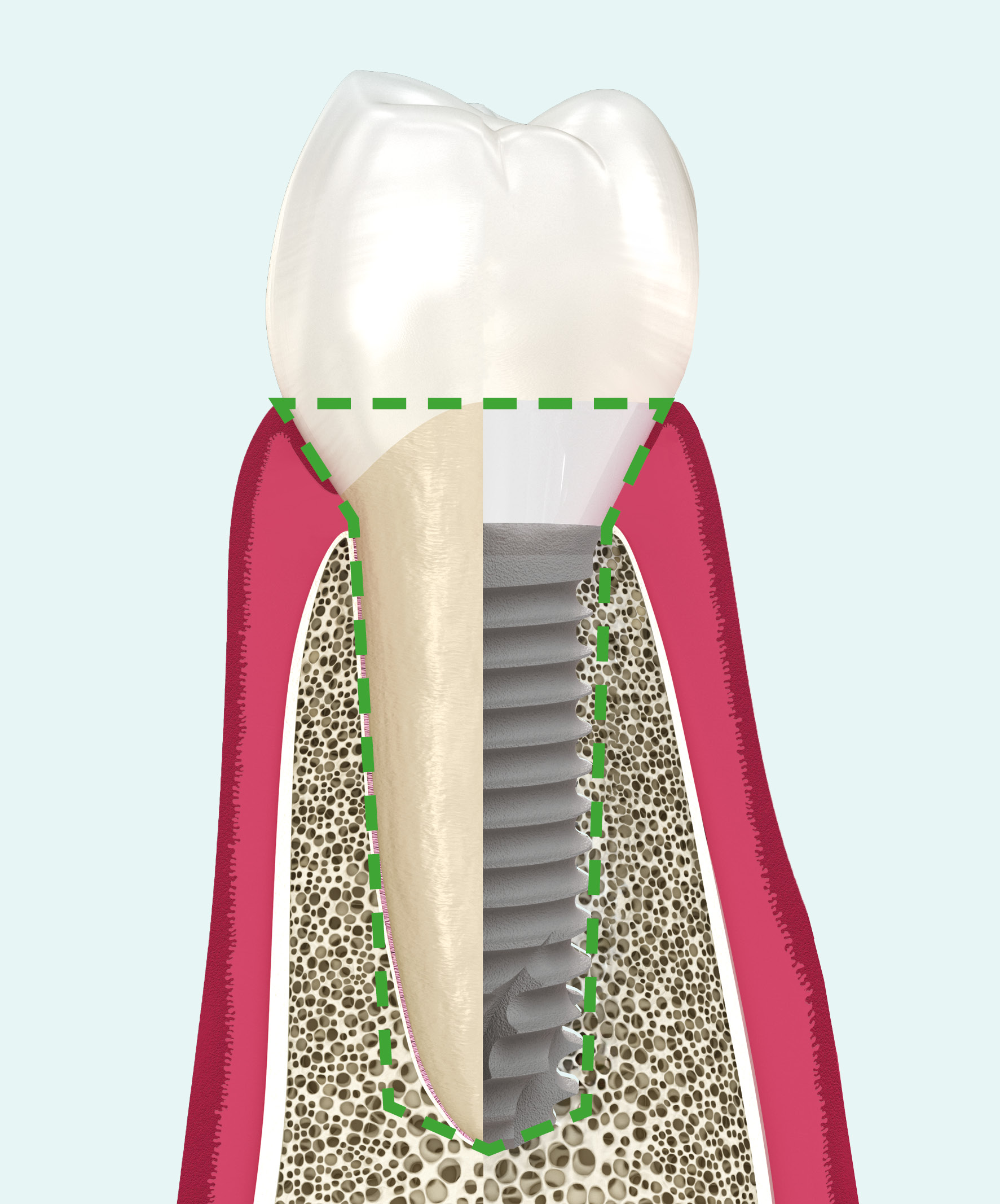 • Profil d’émergence rétréci réduisant le diamètre de l’élément prothétique